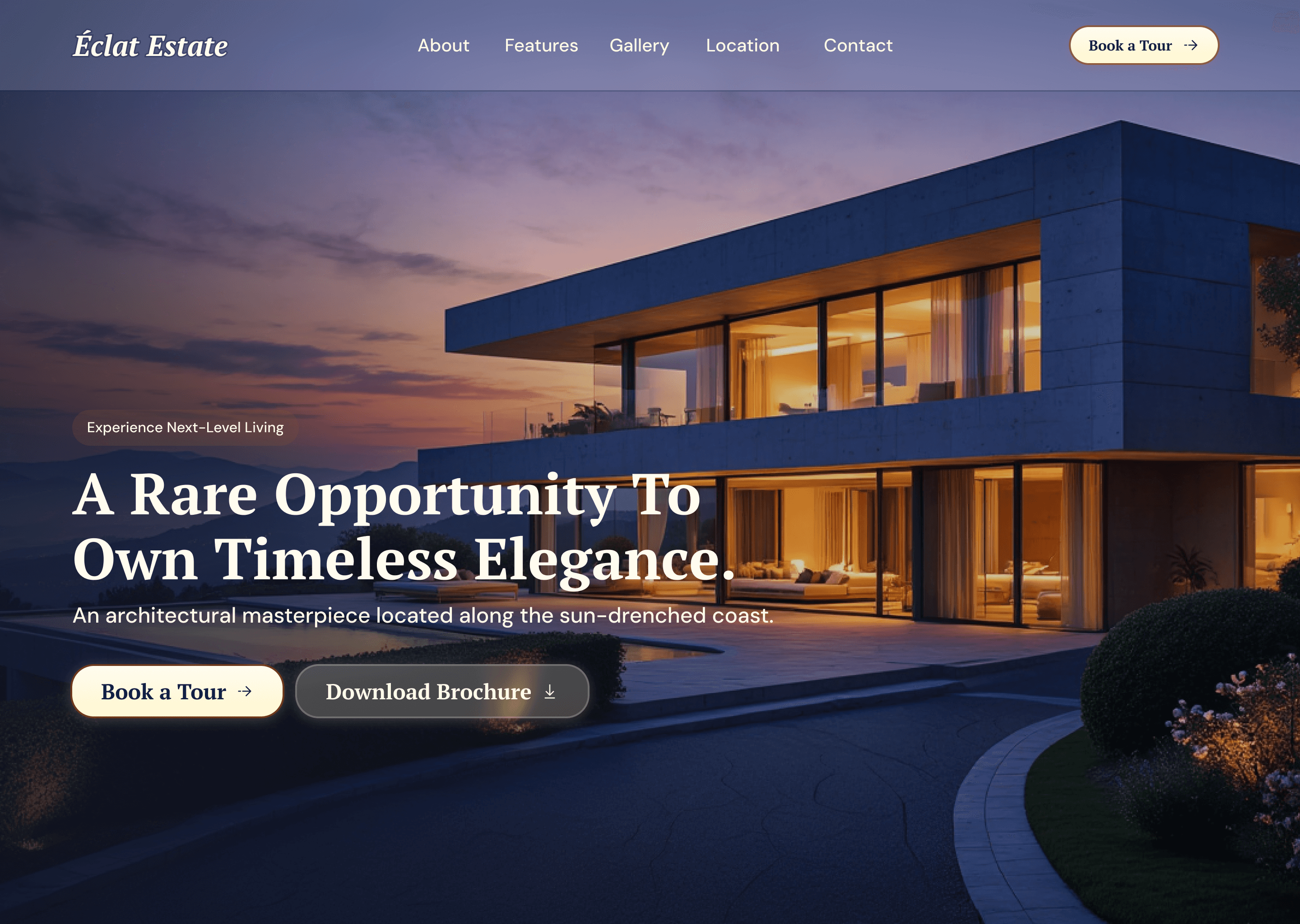 Designed for modern real estate brands that value visual excellence. A single-property showcase with cinematic imagery, clean navigation, and a refined layout that feels exclusive yet effortless.
